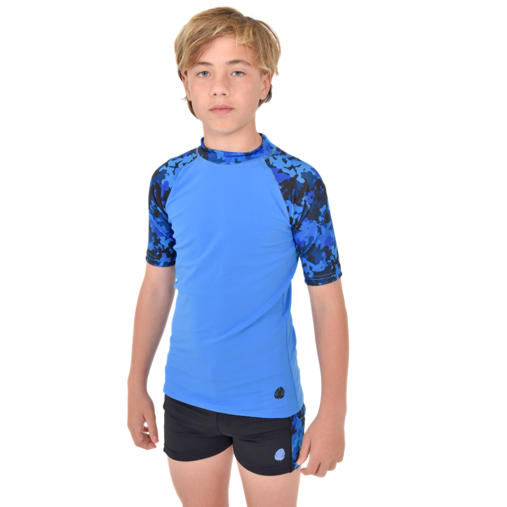 Diseñada para los chicos y chicas, nuestra remera UV50, diseñada para combinar estilo y funcionalidad durante actividades al aire libre. Esta prenda ofrece una cobertura optima y asegura que se mantengan frescos y protegidos del sol, ya sea en la playa, en la pileta o durante sus aventuras al aire libre. Con tejido tratado para ser mas resistente al cloro, esta remera es la eleccion perfecta para disfrutar bajo el sol con tranquilidad.